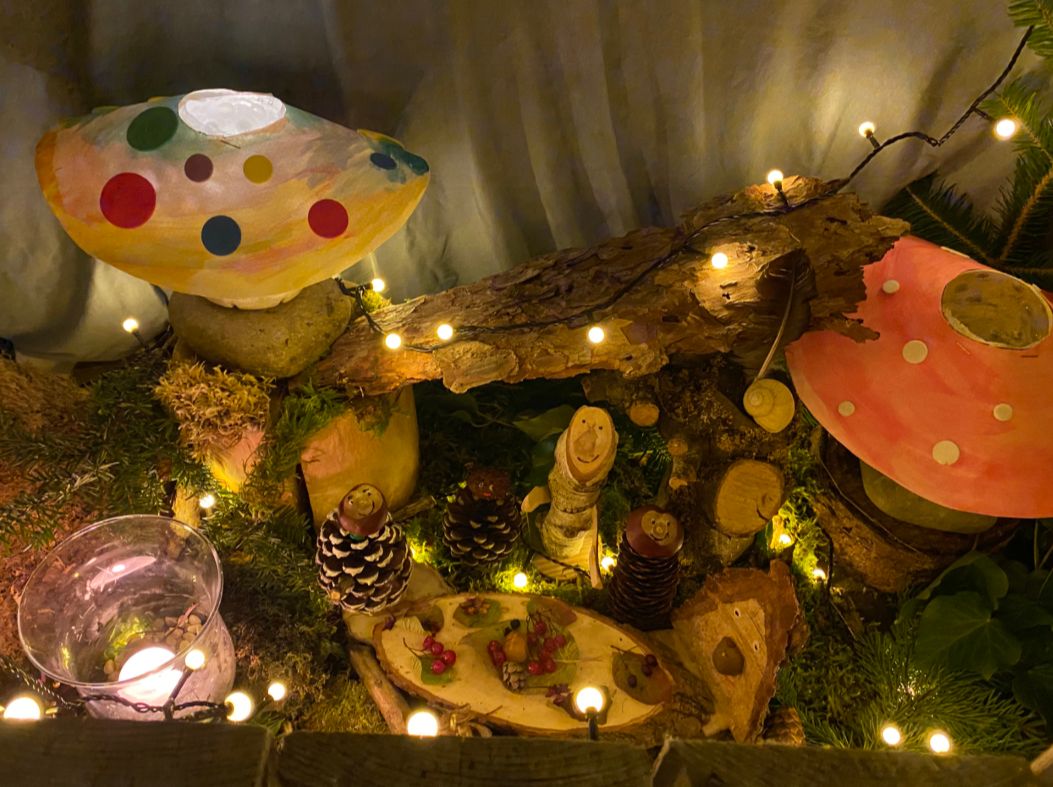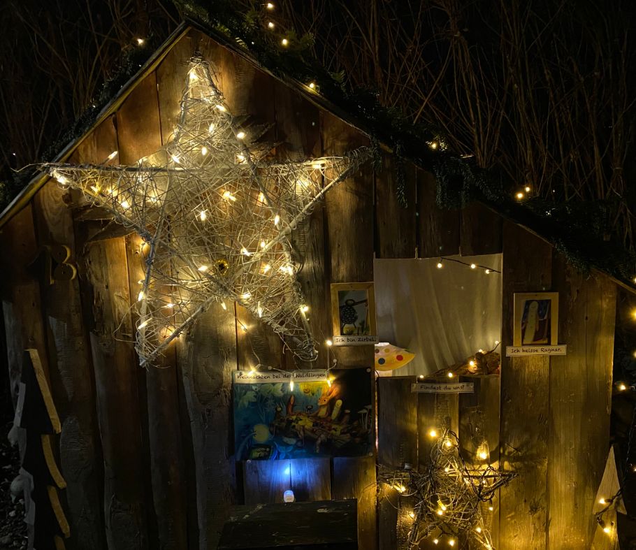 Was für ein Glück, im nachtdunklen Quartier jeden Dezemberabend ein neues, liebevoll gestaltetes Fenster zu entdecken, dazu einen warmen Beerensaft oder ein duftendes Stück Zopf in der Hand - und sich schon auf den nächsten Abend zu freuen. Ausserdem hat sich im Advent 2021 ein langanhaltendes Gerücht bestätigt - im Feld wohnen definitiv Weihnachtswichtel. Von einem kennen wir sogar den Namen, er heisst Zirbel! Ob er sich wohl in diesem Jahr nochmal zeigt? Die wunderlichen Kerle geisterten im Advent ganz ungeniert durch die Fenster und trugen stolz ihre farbigen oder moosigen Zipfelmützen. Ihnen zur Seite standen ganze Tannenwälder mit feinen Details und bunte Melodien aus Kinderhänden. Grosse Gemeinschaftswerke von Schule, Bibliothek, Kirche, Gemeindelernenden, Geigenbau und im Hübeliacker lösten sich ab mit fantasievollen Familienfenstern.